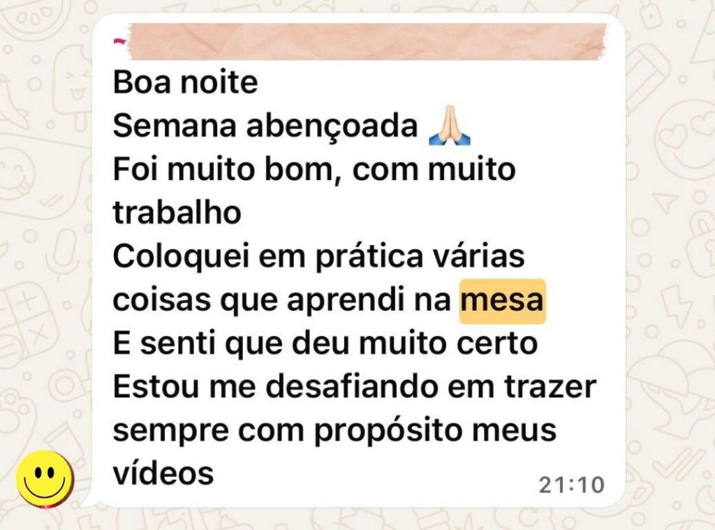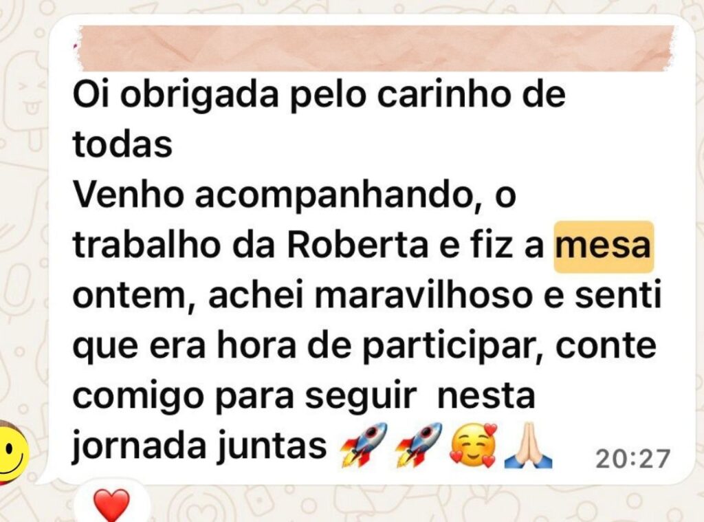 Além de participar da mesa, você receberá por mais 30 dias um áudio diário da Roberta com muito conhecimento